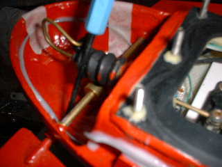 ■スイッチの穴が、目立っていたので、ある程度ですが、カモフラージュしました。 → 家のパソコンのLANケーブル整理時に使用した半端ものとプラスチック棒を使用。 ついでに、船体の外回り周辺を、プラスチック棒で補強しました。