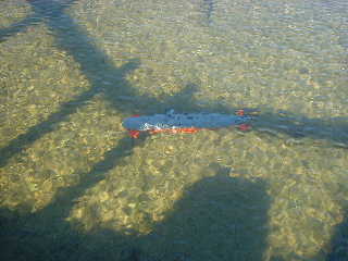 ■テスト走行は、なかなかの走りでした。 ●家から車で約5分で、少し大きめの走行場所がありました。(水深 約20〜40cm) → しかしながら、ここは、水草が多く、スクリュウにからむのが難点です。 → 底ずり走行対策の装備も、破壊されずに、なんとか大丈夫でした。 よし!