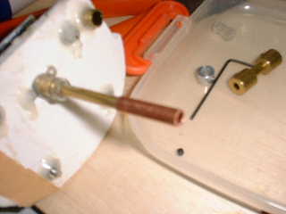 ■出力軸の根元に、ビニールパイプをかぶせて防水していますが、このままでは、’熱だれ’ で浸水してくるので、ビニールパイプに、銅パイプ(外形5mm)を差し込んでいます。