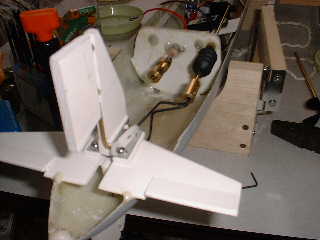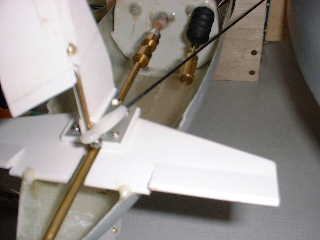 ■垂直尾翼は上下に別かれており、ボールリンクを曲げる。 難しいな・・・ サーボ側は、アジャストストッパーで止める。