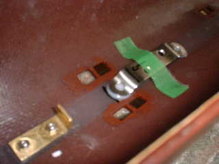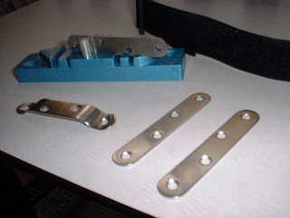 ■WTCをフリーマジック・バンドで、船体に固定する。 WTCの船体固定は、ハル(上部)の浮力材(発砲スチロール)で押さえつけて、固定していましたが、ハル(下 部)のみで、浮力/バランス調整を行いたい為に、新たに、WTCとハル(下部)を、フリーマジックを使用した バンドで固定できるようにしました。これにより、WTCのリークテストも容易に行なえると思われます。 @フリーマジック・バンドを、船体に固定する部分のステーを手曲げして作成しました。 ・枠組みして、がっちりした固定方式を考えましたが、製作できそうもないので、簡単にできそうな固定方式で試 す事にしました。