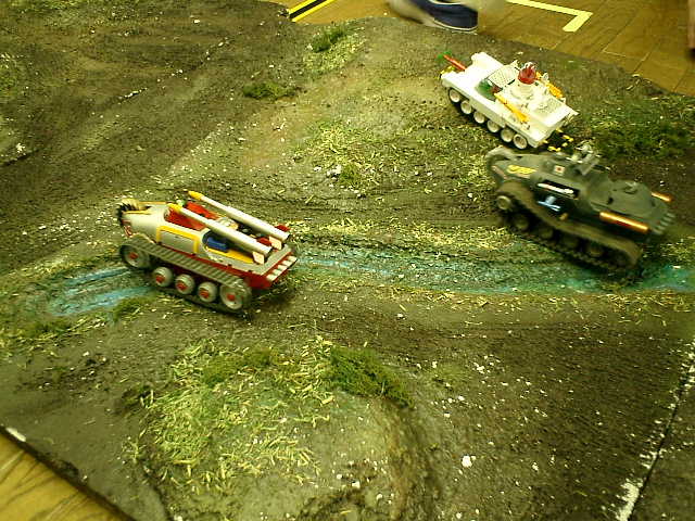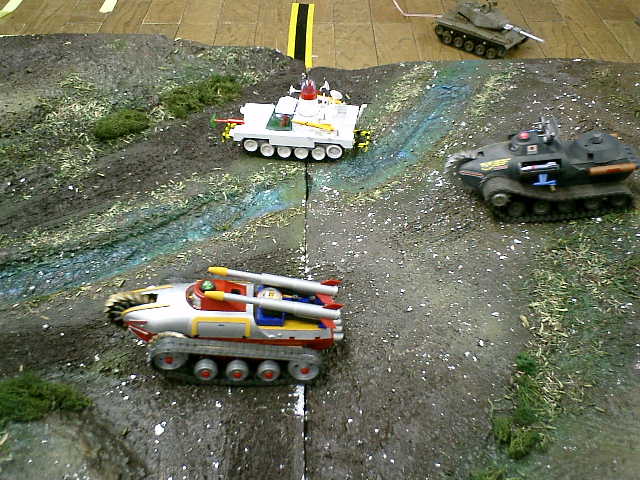 これにて、SF戦車系のバトルレースが終わりましたが、偶然とはいえ、このような整備された 環境下で、一緒に走行(遊ぶ)させて頂きまして、楽しい思い出として、とても嬉しく思います。 それにしても、このコースは過去にも実在する戦車も含めて、数多くの夢あるSF戦車系が走行 した形跡があり、まるで、戦国自衛隊の様にタイムスリップした空間が、突如現れた感じになり ます。 動く模型戦車として、世界一SF戦車系が集結する聖地(コース)と思われます。