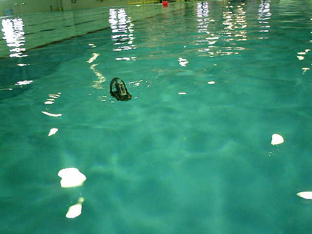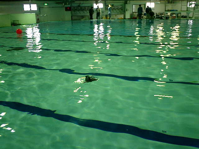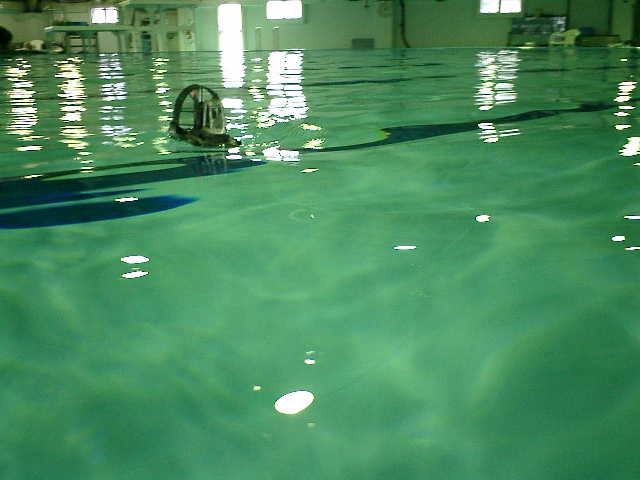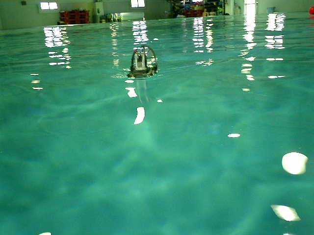 ■RC潜水艦のデモ事前調整走行時に、走行させちゃいました。 ( 2005.05.07 追浜・潜水訓練プール )