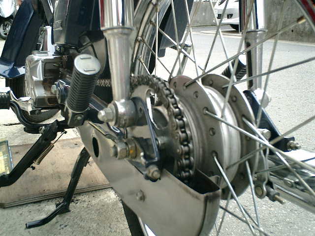 ●チェーンの張り調整を行いながら、固定しました。
