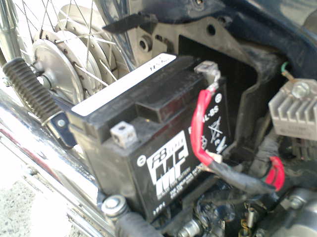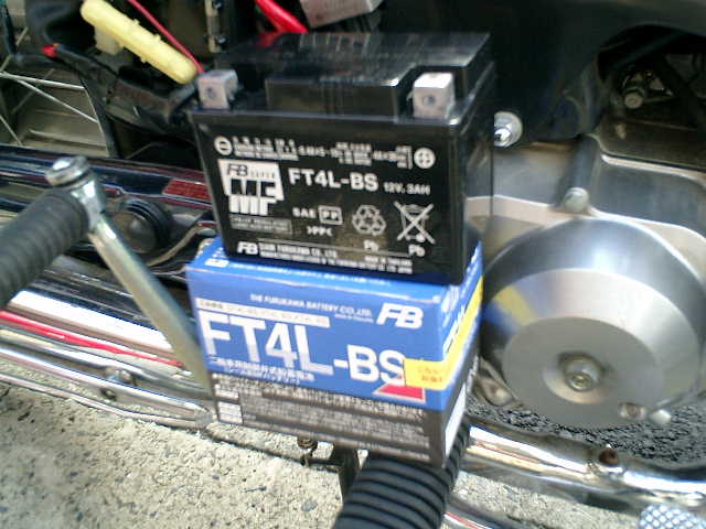 ■充電できない状態ですので・・・ ホームセンターで購入(FT4L−BS)した安価なものと交換です。(^^;