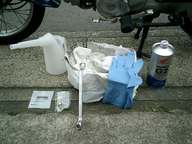 ●ギア(1速→2速)が硬くて、入りにくい状態になります。 バイク屋でノーマルのオイルを交換してもらっていますが、どのようなエンジンオイルなの かは?、知らない状態です。おそらく、SAE規格10W−30(10W:低温時の粘度、 30:高温時の粘度)のエンジンオイルを入れていると思われます。 気候の良い時期( 春〜夏頃・休日のみ )に、お散歩レベルで乗っており、スロットル全開 走行の局面が、それなりにあります。真夏のクソ暑い日に数キロ程走行した時点頃から、シ フトアップ(1速→2速)操作時に、ギアが硬くて入りにくい状態になります。何度かチェ ンジペタルを強く踏み込む動作を繰り返し行なえば、なんとかギアが入るのですが (^^; クラッチの不具合も考えられますが、ギアチェンジが硬くなる事象は、オイルの油温が高く なり潤滑性が低下する状態が想定されますので、少しだけ高温状態での走行条件下を重視し て、SAE規格10W−40(10W:低温時の粘度、40:高温時の粘度)のエンジンオ イルを使用する必要性を感じましたので、自分でオイル交換して試行する事にしました。