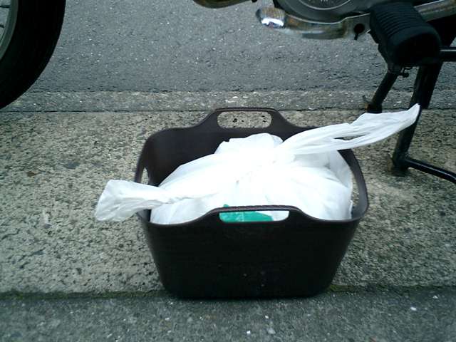 ●交換作業が終わりましたので、収納箱(ゴミ箱)の中に使用した道具を入れました。