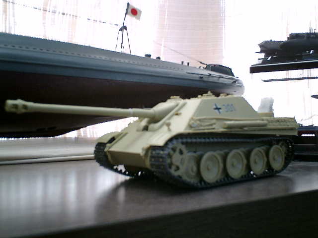 ■リモコン戦車の本体です。 家の近くの模型ショップで、物色していましたら、リモコン戦車が有りましたので、買っちゃいました。 (^^)/ → リモコン戦車って、少ないのだな〜 ふ〜ん ●ドイツ五号駆逐戦車(後期型)ヤークトパンター(JagdPanther) とは・・・ X号戦車の車体をベースにして、避弾傾始を考慮したフォルムの固定式砲塔で、タイガー2型と同じ70口径の88mm 砲を載せて、近接防衛力も考慮されている駆逐戦車です。当時(1944年頃)は、ドイツ駆逐戦車の最高峰で活 躍していました。