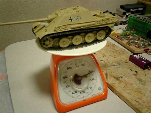 ●ウエイト・アップ改良で、リベンジだ! このリモコン戦車の参加クラスで、「 動く戦車オフ会 」の競技する場合は、参加車輛のレギュレーションとして 重量(350g)以内と定められているので、試しに、ウエイト・アップしてみる事にしました。(^^;