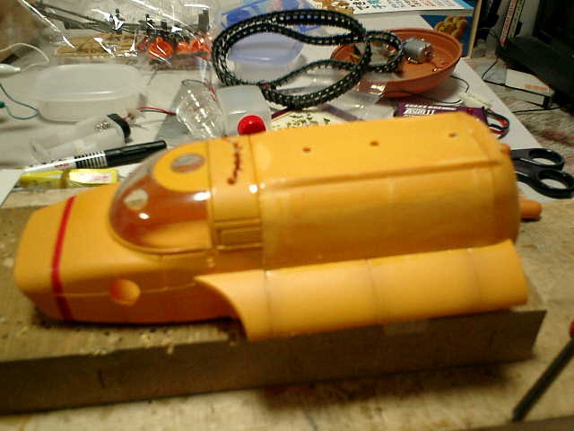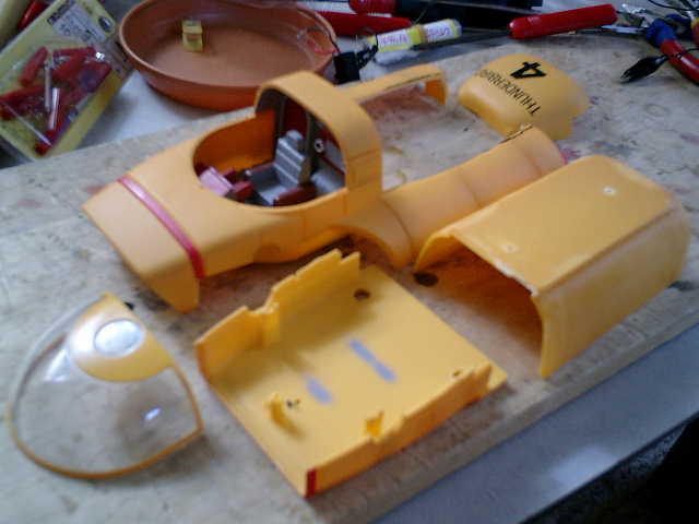 ●車体サイズに合わせて、サンダーバード4号からの使用パーツをカッテングしたら・・・