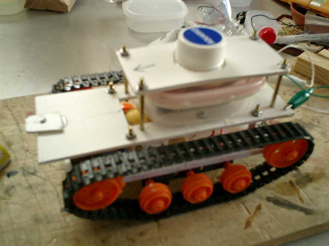 ●タミヤの楽しい工作シリーズの "タンク工作基本セット" を使用して、キャタピラ車を作る事にしました。