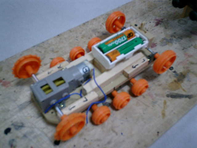 ●歯車メカと車体を連結する部分は、木材板を使用して固定する事にしました。