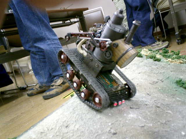 ●「動く戦車オフ会2005」俺ロボット戦車コンテストに参加しました。(2005.12.04) シングル戦車レースにも参加させましたが、途中でコースアウトしちゃいました。(^^;