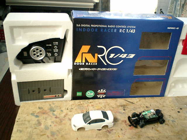 ■エポック社製:インドアレーサー アールシーヨンサン SPEC-2 ( INDOOR RACER RC 1/43 ) 今回は、他の物からの流用する方法として、ナローバンド対応のRCカー完成品( 1/43 スケール )より、機器類を取り出して試行的に搭載する予定です。スーパーヘテロダイン方 式のクリスタル交換が可能な便利物で、小型化の機器類が嬉しいです。 → これは、安価で譲って頂いた物です。 ラッキー〜 (^^)/