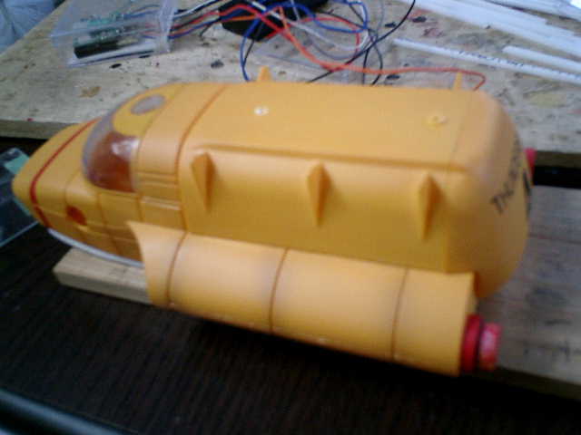●なんとか、改造・組込みができました。 「宇宙大怪獣ギララ」の劇中で登場していた、宇宙船(アストロボート)形状な感じかも (^^?