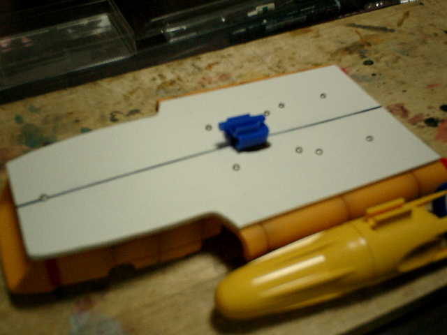 ●浸水位置を高くしました。 水が入ってくる位置を、喫水線より少しでも高くしたいので、プラ板で囲んで装着しました。