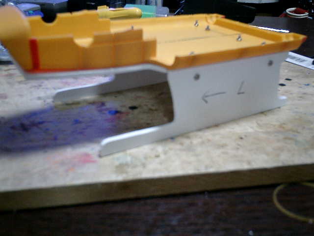●本体外部の底部分を補強します。 本体プラスチックが弱く感じましたので、1枚の板で補強しました。