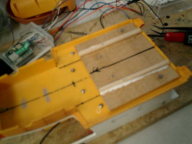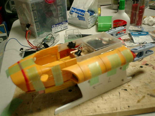 RC機器類を組込みますので、本体内部をスッキリさせての格納スペース確保です。