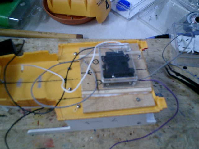 → 舵のリンケージ部分のスペースが狭いので・・・ ちょっと心配です。(^^;
