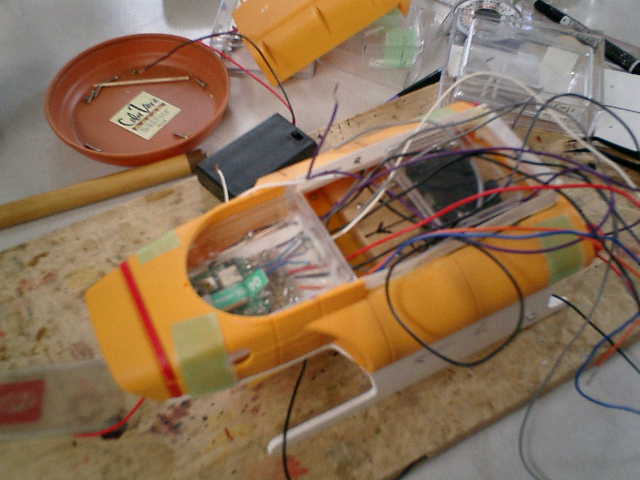 → 内部に組み込んだモータ固定の位置決めが難しかったです。 微妙〜 (^^;