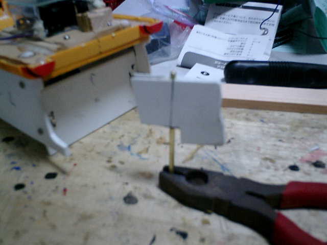 ●舵軸の位置決めです。 本体側に、真鍮パイプを固定させ、このパイプの中に舵軸(真鍮棒)を通して可動させます。