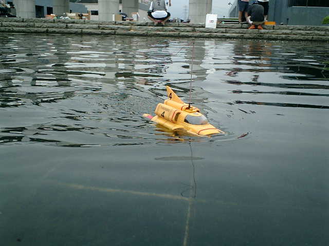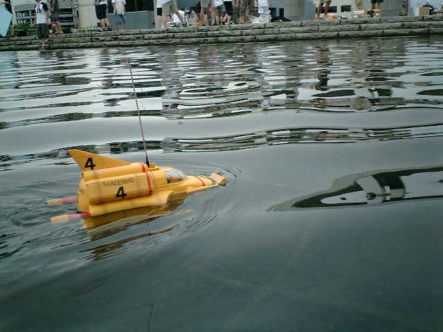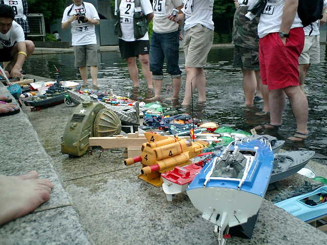 ●水ものオフ会2007作戦(2007.7.16)に参戦です。 ラジコン艇スラロームレース(スケールクラス)に出場しましたが、レース途中でSTOP したままで、まったくRC操作できなくなり、完走できませんでした。(^^;