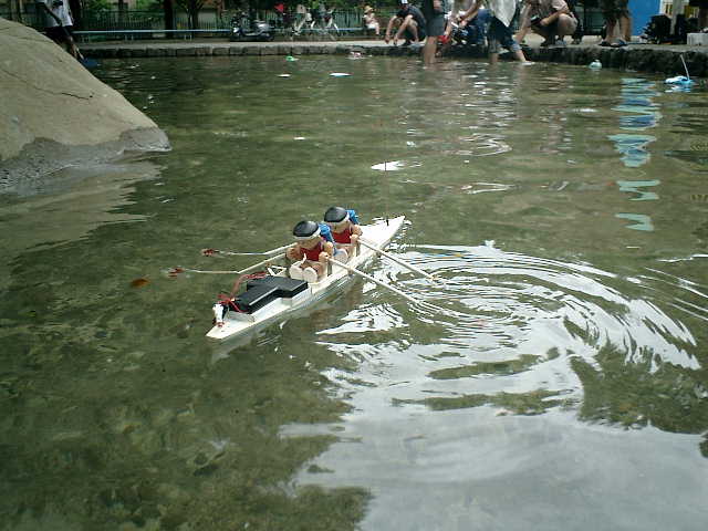 家のお風呂では動かす事ができませんので、公園の噴水で試運転走行する事にしました。