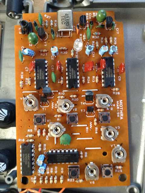 ●送信機の電子基盤です。 FM40MHz帯のクリスタル(40.680MHz)を搭載していますが・・・ 日本のラジコン使用基準に該当するのかな (^^?
