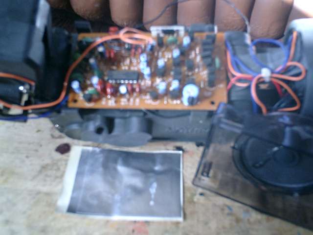 ●本体の電子基盤です。 基盤を本体に設置すれば、基盤裏とモーター缶部分が接触しますので、ノイズや熱などの 対策として、銀シートが間に装着されていました。