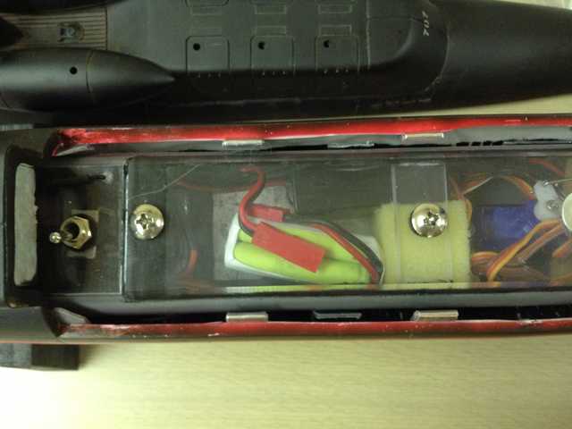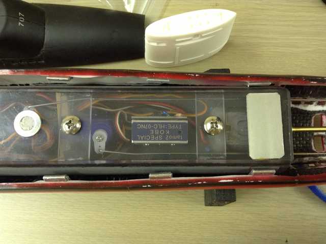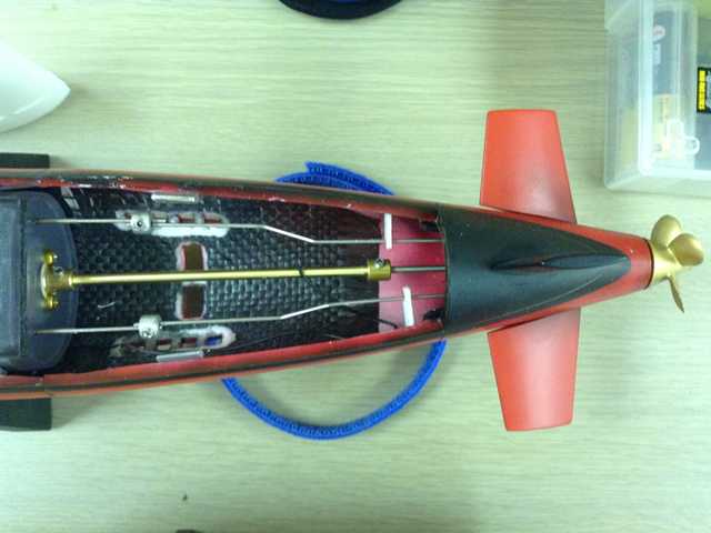●このモデルは船内モーター用ですが、水中モーターで走行させることにします。