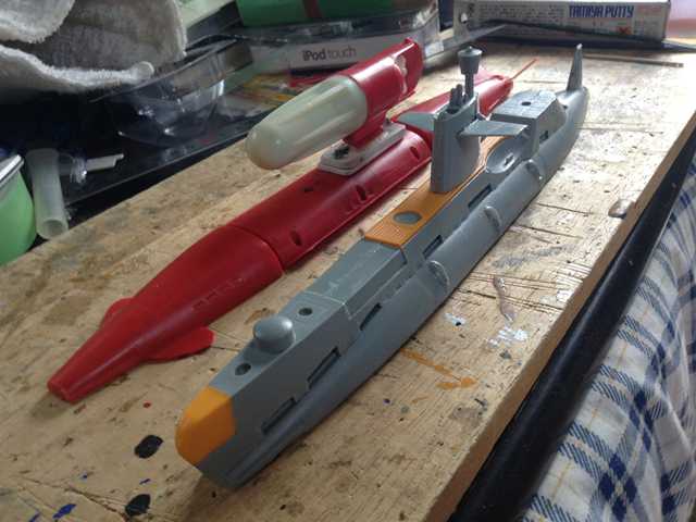 モータで動くプラモデルの潜水艦で、昔の製品をベースにして新たに金型から制作したよ うです。最初の製品は今井科学からの販売で、男の子が興味を持っていたプラモデルだっ たと思います。当時の私(子供の頃)の少ない小遣いでは、手軽に買えないものでした。 新たに、タスクフォースから蘇えったもので、とても懐かしいプラモデルです。 【 サブマリン707 】