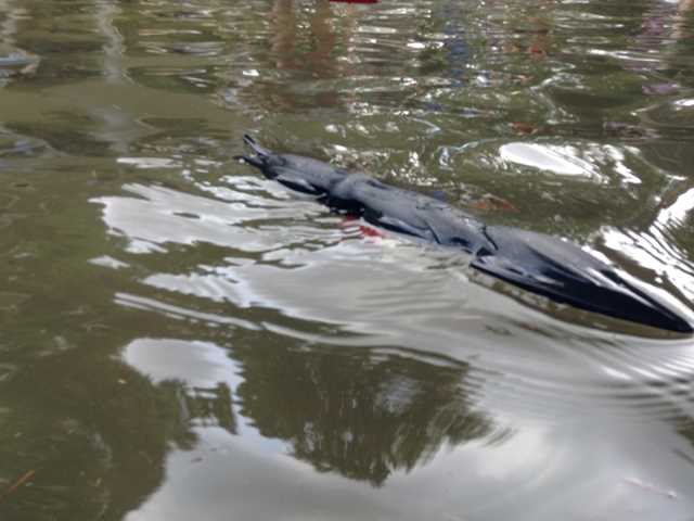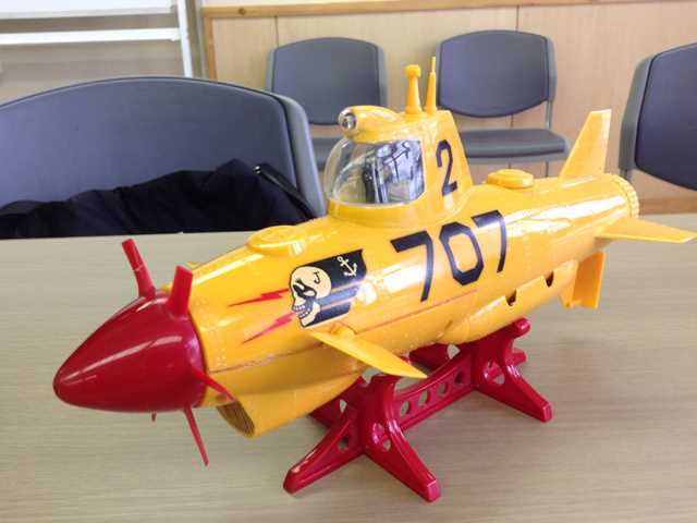 → やけに細長い潜水艦ですが・・・ まるで、イカみたいです。(^^;