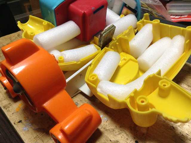 → 発砲スチロールを適当に押し込んで入れますが・・・ 大丈夫かしら (^^?