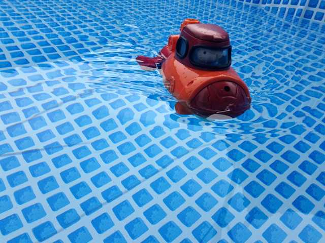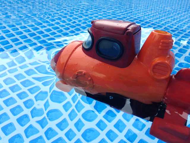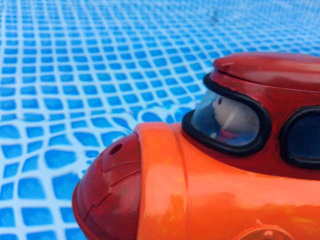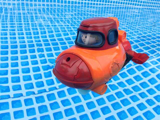 フリーマーケットで、お風呂で遊ぶ水陸両用のオモチャを買っちゃいましたです。(^^)