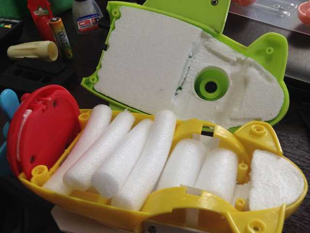 → 発砲スチロールを適当に押し込んで入れますが・・・ 大丈夫かしら (^^?