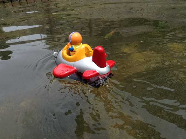 フリーマーケットで、お風呂で遊ぶ水陸両用のオモチャを買っちゃいましたです。(^^)