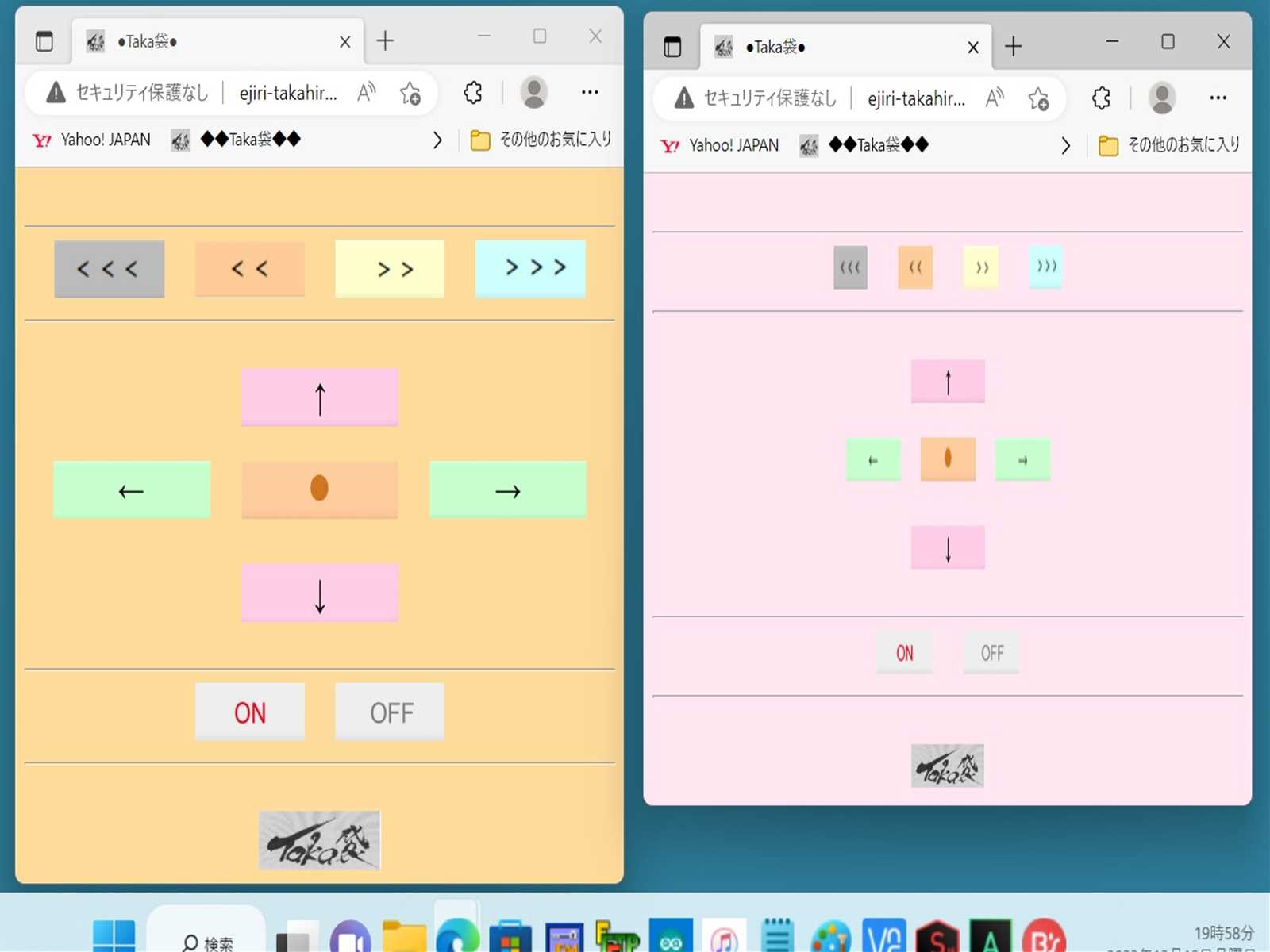 ●IOT接続での … 操作画面パネルです。 パソコンのWebブラウザー(Microsoft Edge)で表示しています。■パソコンのモニターでは、両画面が使用できます。 【左側】の大きめな 画面は … パソコンで使用します。 【右側】の小さめな 画面は … スマホで使用します。