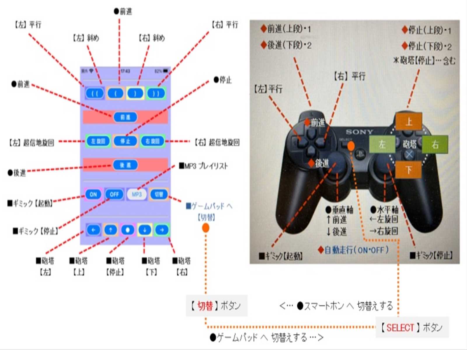 ●( スマホ ⇔ PS3 )… ボタン操作で「 切替え 」できます。*クリックすれば、拡大します。