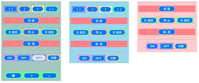 【砲塔なし】……… 砲塔操作(なし)パネル 【オムニ走行】…… オムニ走行操作パネル 【基本走行】……… 基本走行操作パネル