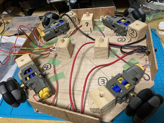 ・オムニホイールの接地面に対して … 荷重が均等でない感じですので、直進性が不安定な要因かもしれません。
