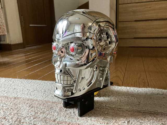 ●ターミネーター型戦車 HEAD T-800 ●ドクロ系で、走行させてみたいので … この頭蓋骨( ずがいこつ )を使用します。……… ターミネーター 【 USJのお土産 小物入れ 】 → ロボット的な「 T-800 」のヘッドが … いい感じです。(^^) ・ ・ ・ ・ ・ ●アームクローラー駆動の車体で、走行させる事にしました。 ・ ・ ・ ・ ・ ●固定台に装着しました。 ・ ・ ・ ・ ・ ●車体と合体した状態です。 → 機械的なドクロ系ですが … いい感じです。 ・ ・ ・ ・ ・