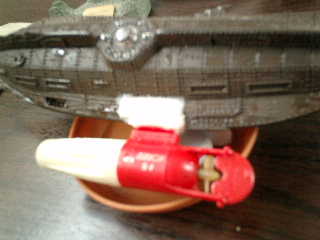 ■試しに、ノーチラス号のフィギュアに、水中モーターを装着する事にしました。 ノーチラス号とは・・・ ジュール・ベルヌの海洋冒険小説を、ウォルトディズニーが映画化した作品『海底二万哩 』の劇中で登場していた超科学潜水艦「ノーチラス号」で、科学の粋を結集して建造され た潜水艦です。鋼鉄製の船体と、敵船の艦底を切り裂く衝角などは、SF界を代表する独 創的な潜水艦です。 (X-PLUS製・全長380mm)