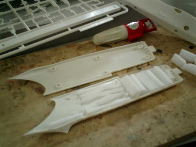 ●船体(艦尾)部分の空洞部分に、浮力材(発泡スチロール)を入れます。