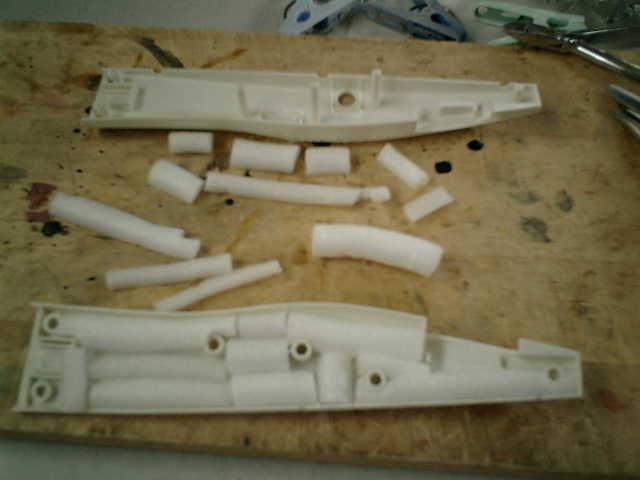 → まさか・・ 艦首と艦尾を、パーツ連結するとは (^^;