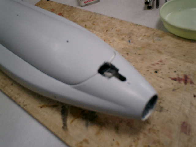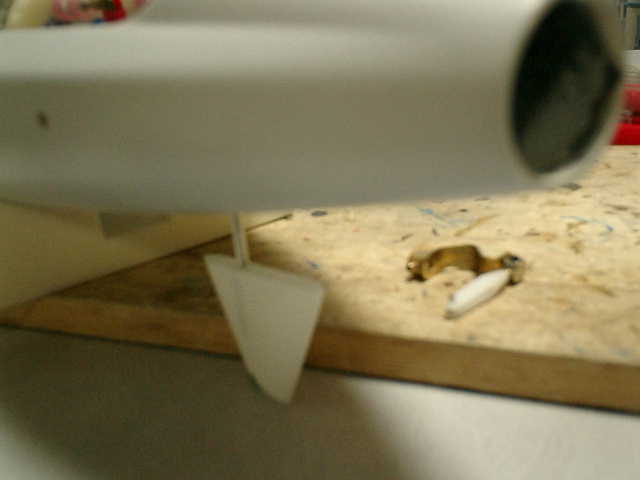 ●垂直尾翼を仮固定する。 組み立て作業の際に、アッパーボディーを外す機会が幾度かあります。アッパーボディーを外す時は、垂直尾翼を持って 外した方が、やりやすい感じですので、最初の組み立ては垂直尾翼をネジ留めで、仮固定しました。