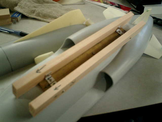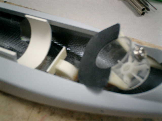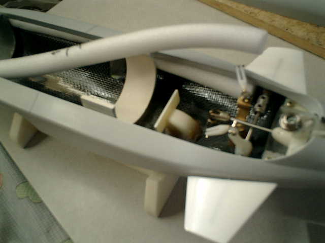 ●昇降舵を、船体両側より差し込んで、リンケージパーツ類をセットしました。