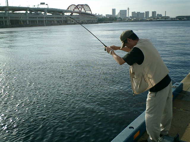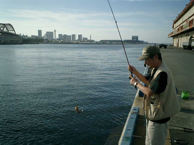 TBV-2号で、SUB REGATTA 2006(会場:神戸)に参加しました。(2006.9.17) 会場(六甲アイランド)に行く前に、ちょっと・・・ 当日早朝に、新港の突堤に寄り道して、魚釣りで遊ぶ事にしました。(^^)