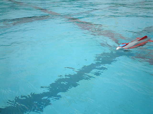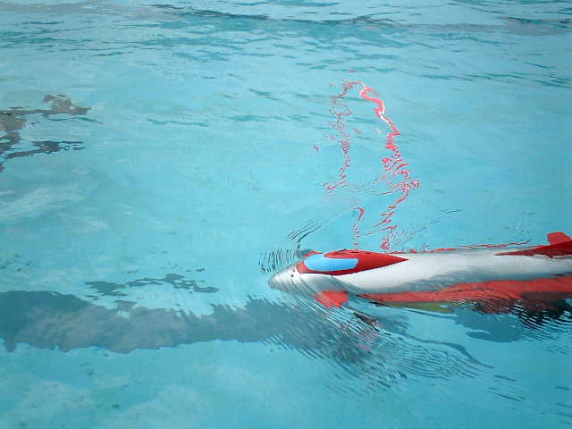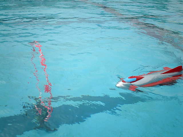 ●このままの水上走行で・・・ ジェット・エンジン(電動モーター)全開せよ!