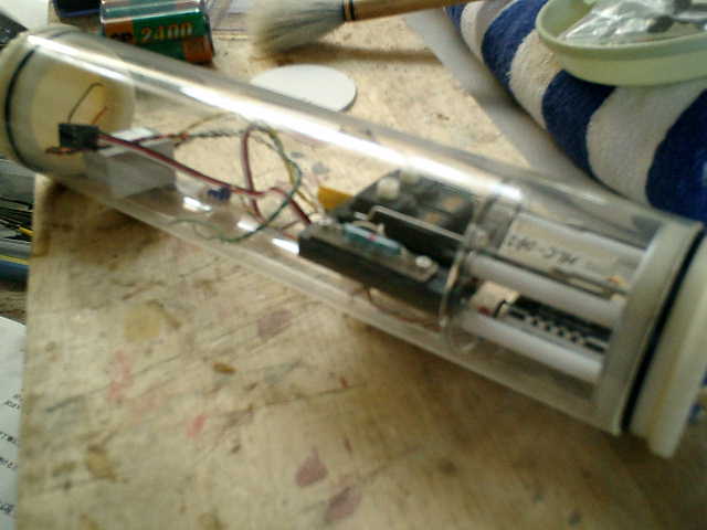 ●取り合えずの完成 (^^? ですが・・・ 汎用WTCの中にラジコン機器類を仮設置で組み込んだ状態ですが、取り合えずの完成です。