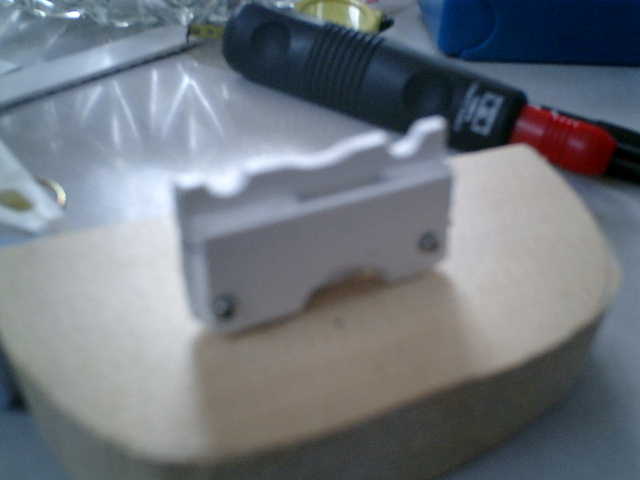 ●ストッパー台の完成です。 ボンドだけでの接着では、ちょっと不安ですので、念の為にネジとボルトで固定しました。